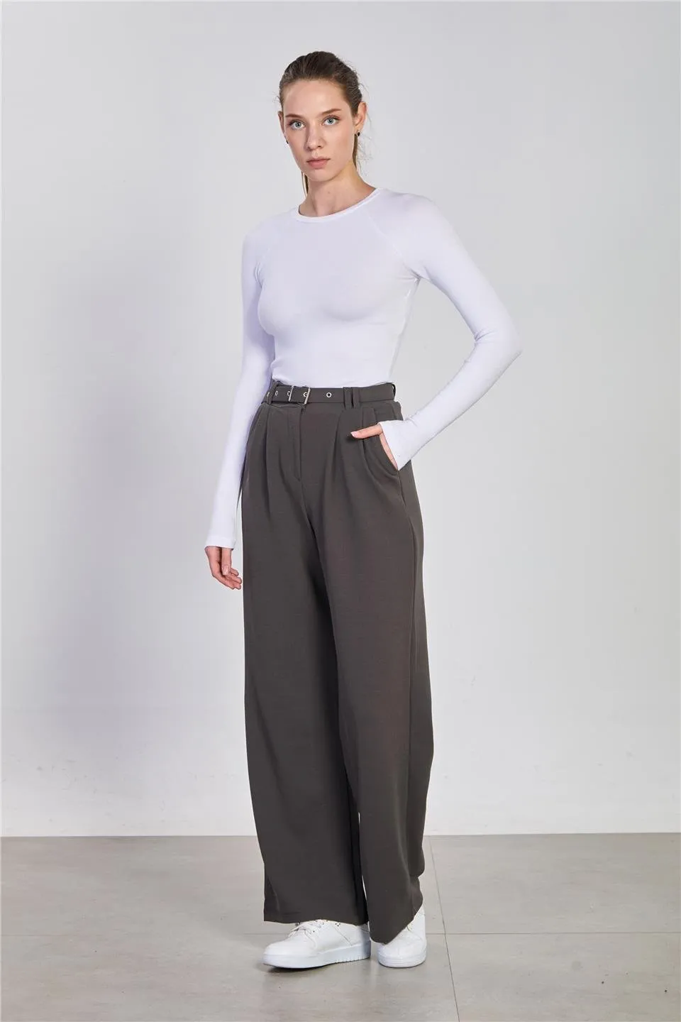 بنطلون نسائي بقصة مستقيمة و أزرار