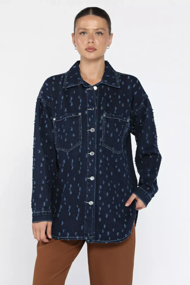 جاكيت كتان نسائي منقوش بغطاء رأس أوفر سايز - Beyond Store