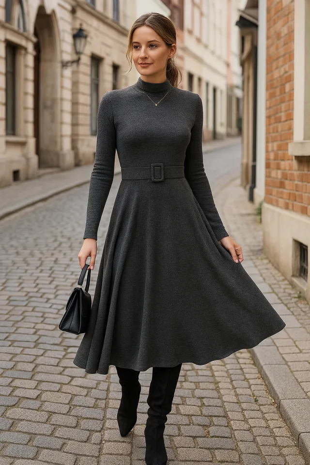 فستان ساندي خفيف بياقة V وأكمام بالون، مثالي للأيام الدافئة والخروجات السريعة.