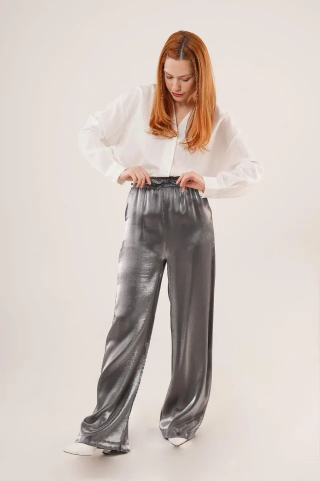 بنطلون نسائي واسع الساق بخصر مطاطي لراحة فائقة وأناقة لا مثيل لها. تصميم متعدد الاستخدامات، مناسب للملابس الكاجوال والأنيقة. قابل للغسل في الغسالة على درجة حرارة 30 مئوية.
