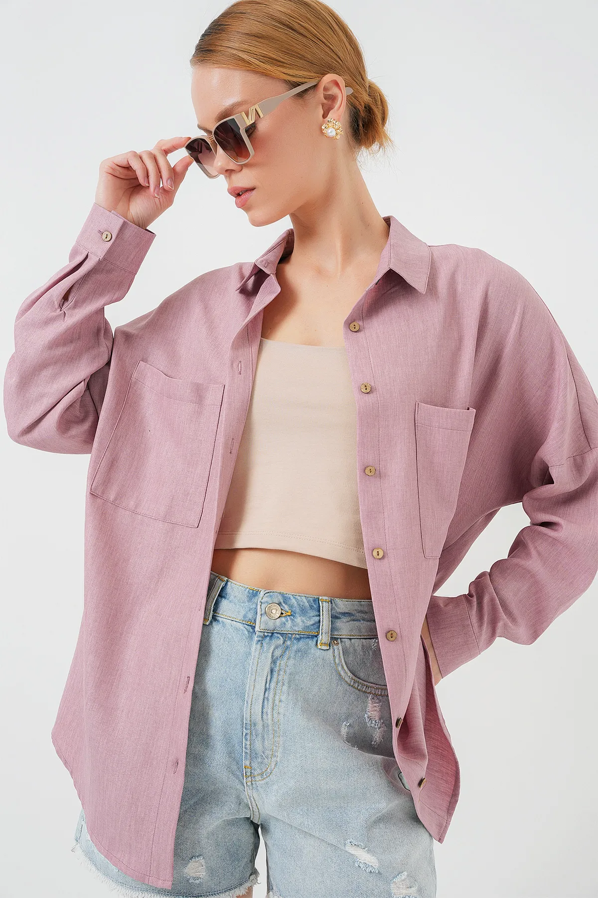 قميص نسائي سادة بأكمام طويلة، قطعة أساسية تضمن لك مظهر أنيق وعملي سواء في الدوام أو المشاوير اليومية، تصميم يناسب كل وقت بسهولة.