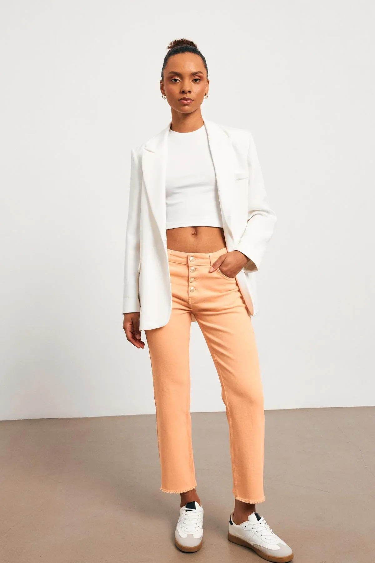 بنطلون جينز نسائي واسع الساق بتفاصيل فيونكة أنيقة لإضفاء لمسة أنثوية. تصميم عصري ومريح، مثالي للأزياء العصرية. قابل للغسل في الغسالة على درجة حرارة 30 مئوية.