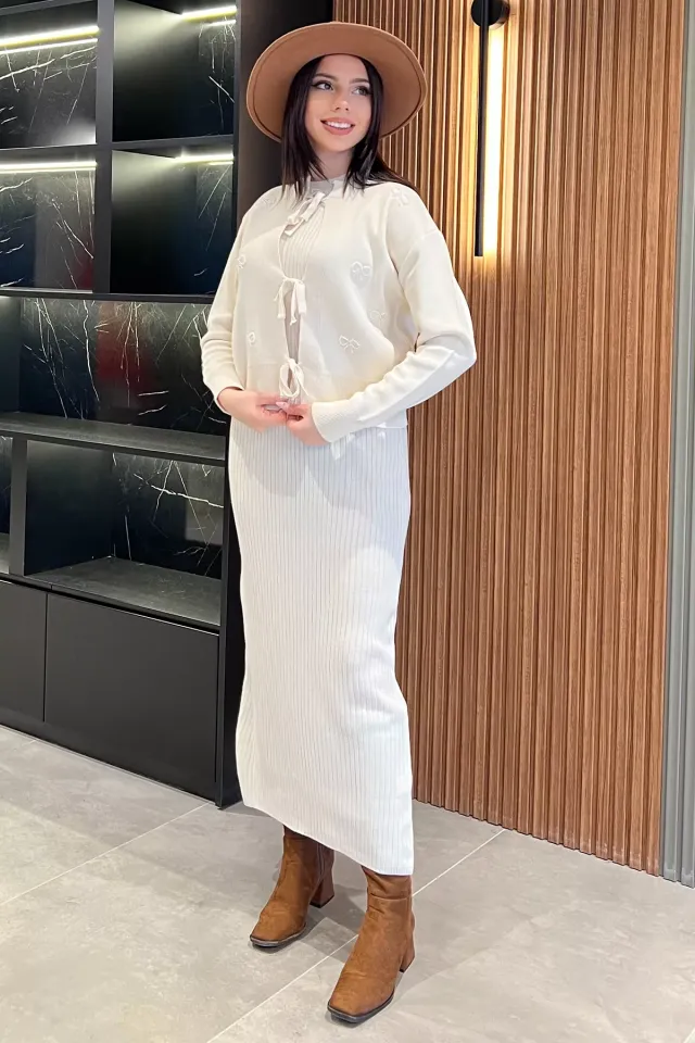 فستان تريكو نسائي قصير مضلع بياقة دائرية وأزرار أمامية نصفية وأكمام طويلة مع جيبين، قصة محددة تمنحك راحة وأناقة كل يوم.