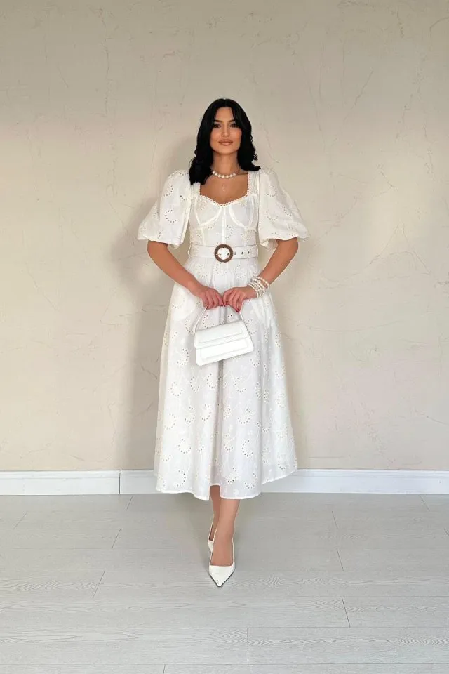 فستان قطني نسائي بأزرار أمامية وحزام خصر - Beyond Store
