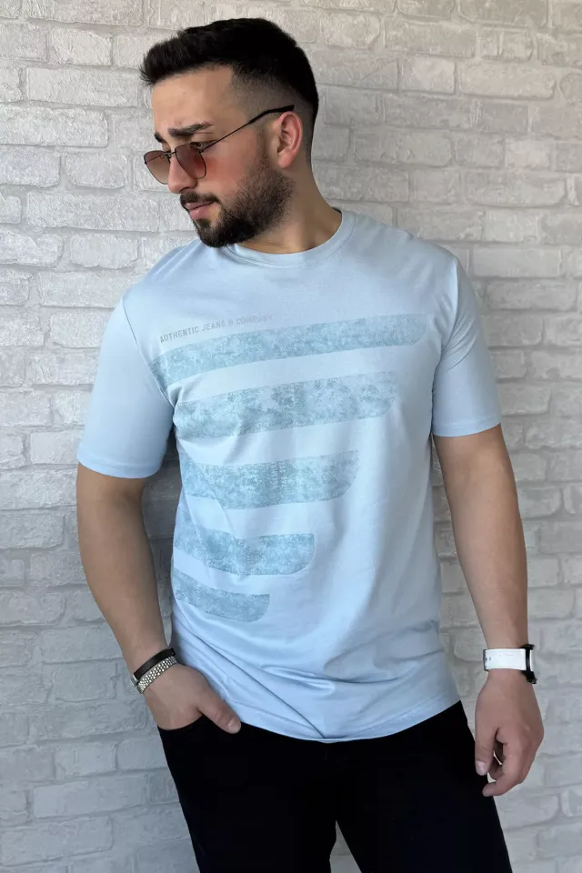 تيشيرت رجالي مضلع بأكمام قصيرة، بياقة بغطاء رأس وأكتاف منسدلة. يتميز بقصّة واسعة، مصنوع من 65% بوليستر و35% قطن لراحة قصوى وأناقة صيفية عصرية.