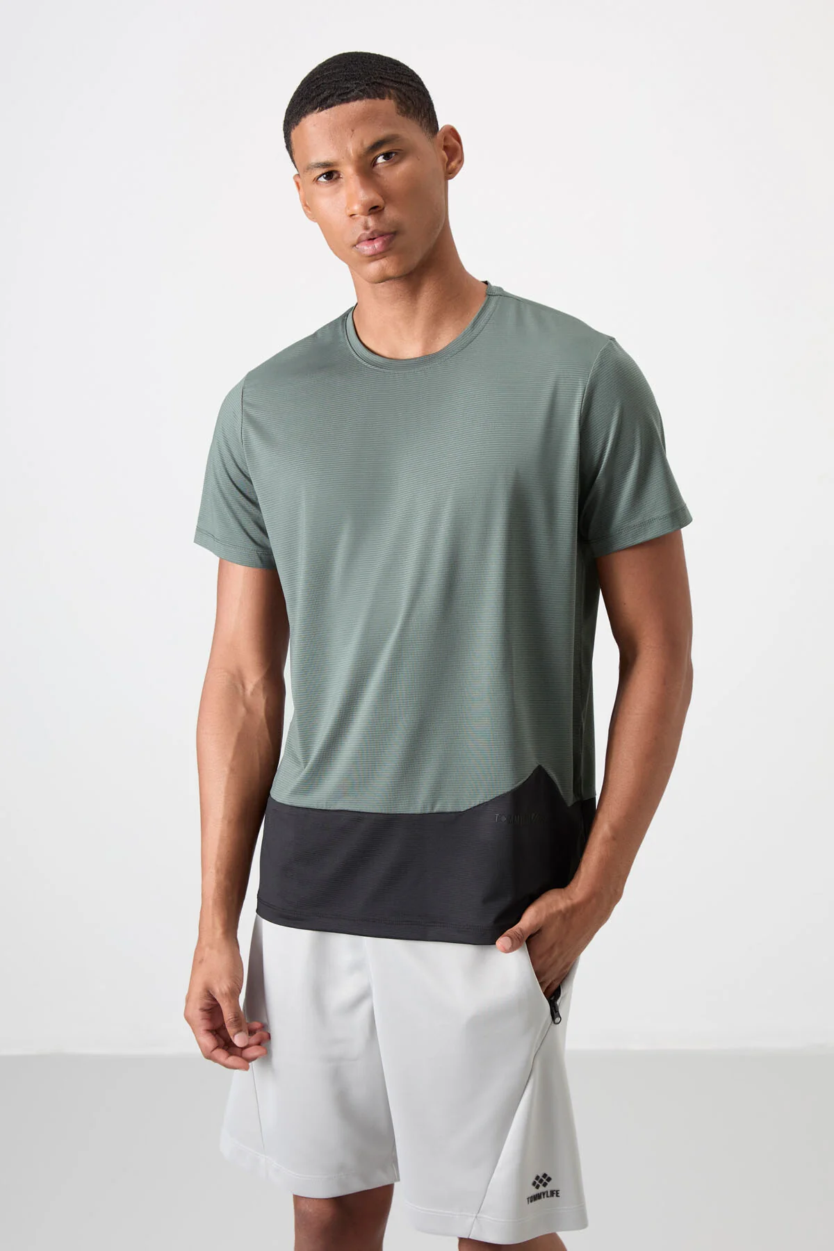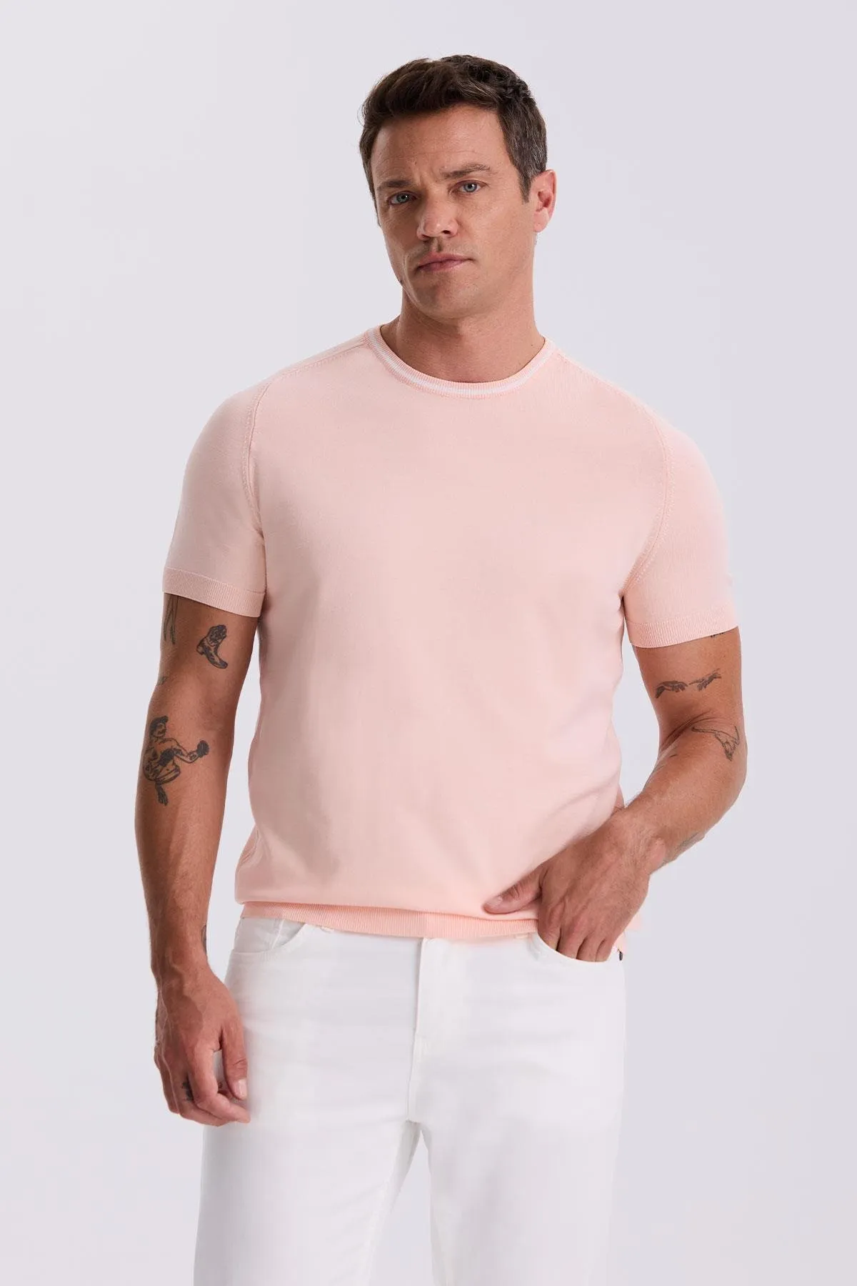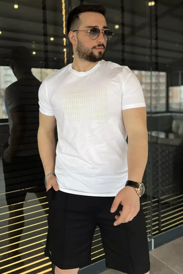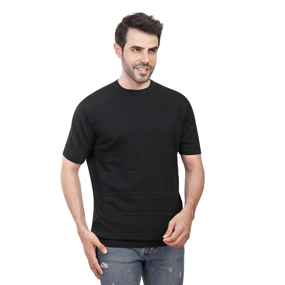 تيشيرت رجالي سادة بأكمام منسدلة وياقة دائرية وقصة مريحة. مصنوع من 95% بوليستر و5% لايكرا لراحة مرنة، مثالي لإطلالة صيفية أنيقة ومريحة.