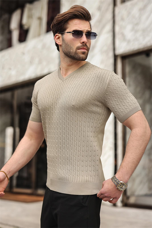 تيشيرت رجالي منقوش بأكمام قصيرة وياقة بولو، مصنوع من 97% قطن و3% إيلاستين. تصميم ناعم ومرن يضمن الراحة وإطلالة صيفية أنيقة.