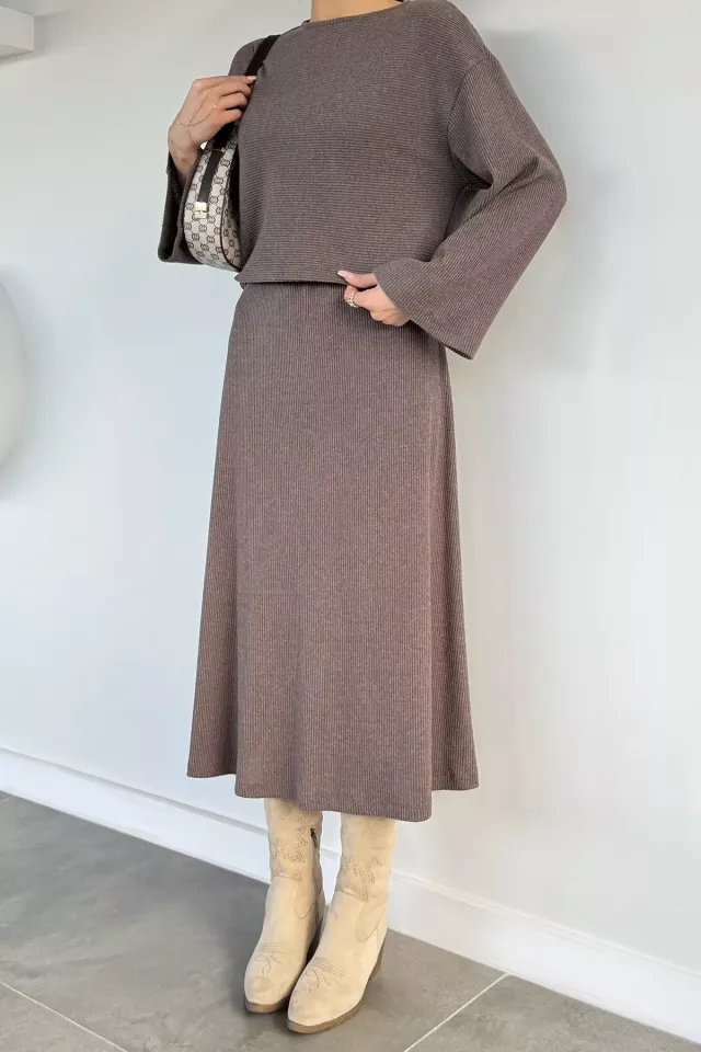 زينة اللؤلؤ والأحجار ترفع من أناقة هذا الطقم المحتشم من الدنيم