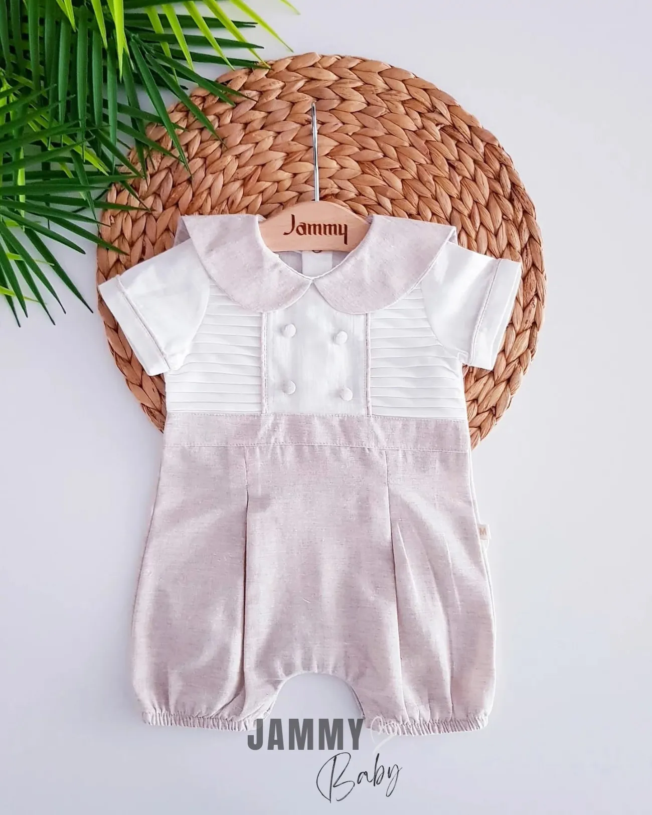 بودي سوت بناتي بدون أكمام مع ياقة دائرية كلاسيكية.