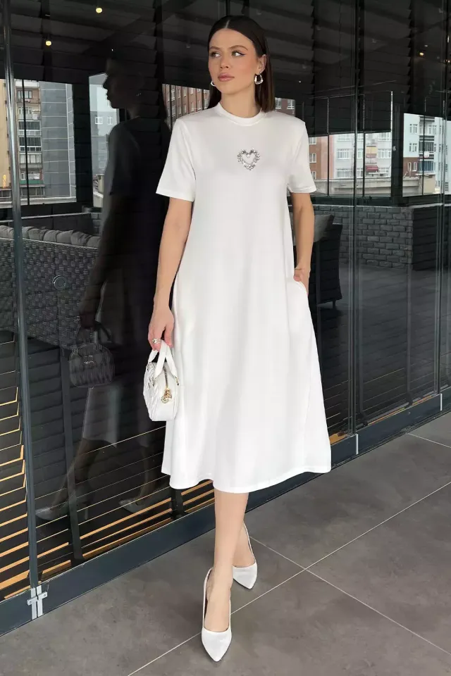 فستان نسائي من كريب لامع بكسرات وياقة V بأسلوب ياقة صينية وأكمام قصيرة