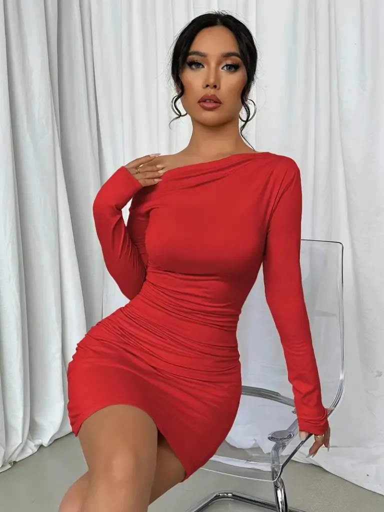 فستان نسائي ماكسي كروب بتفصيلة خصر مزخرفة بوردة