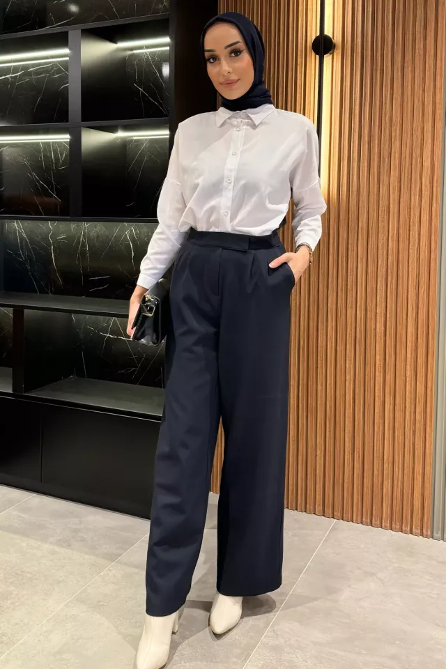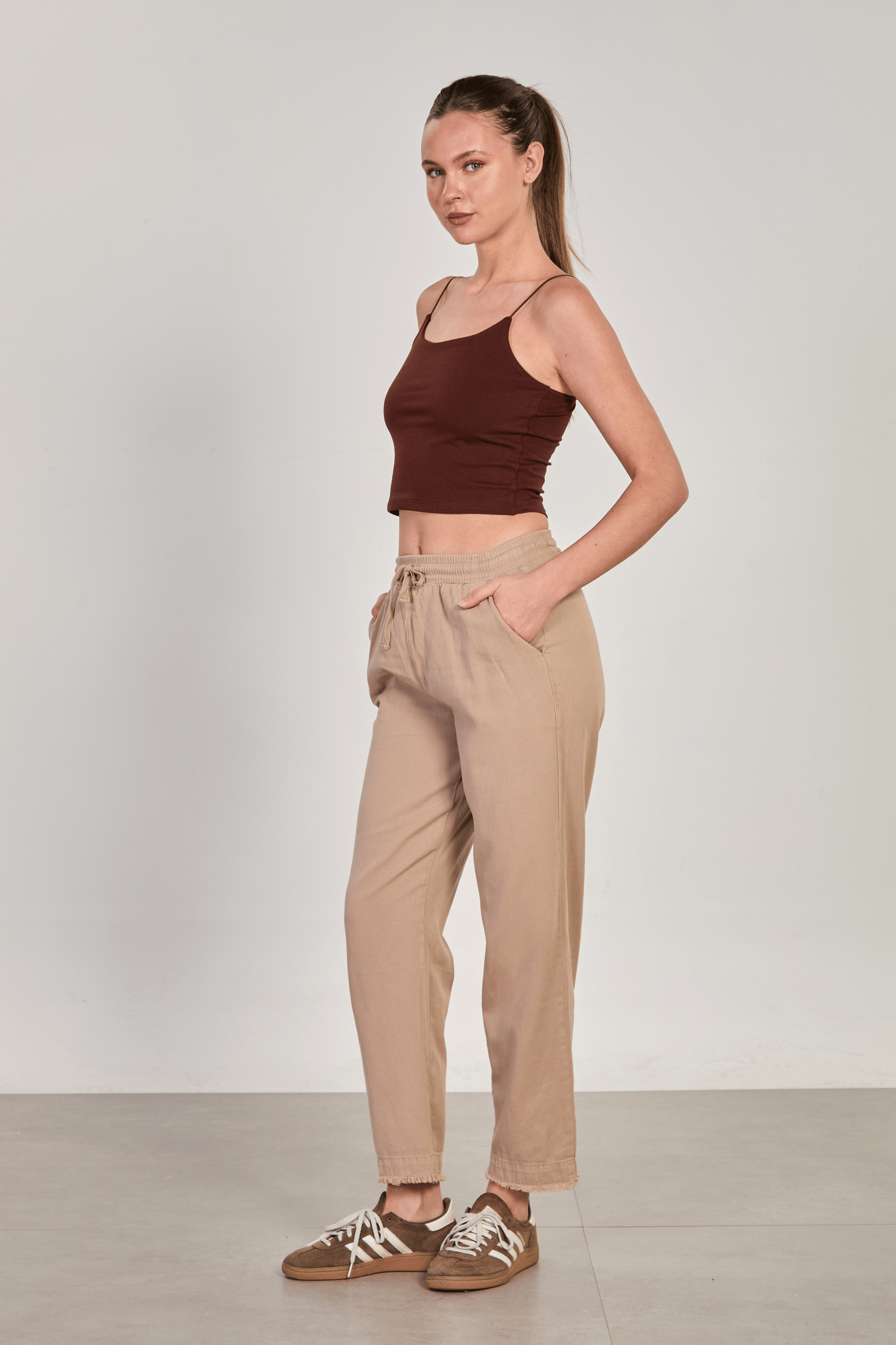 بنطلون فيسكوز طويل بخصر مطاطي منقوش - Beyond Store