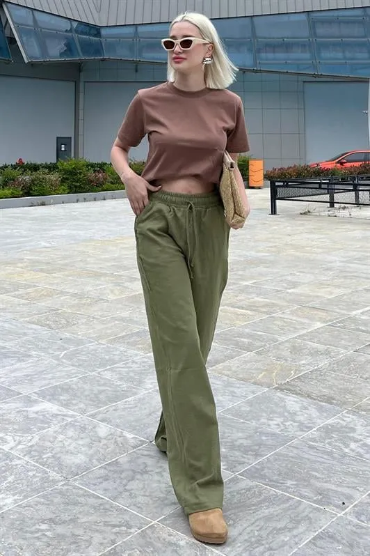 بنطلون فيسكوز طويل بخصر مطاطي منقوش
