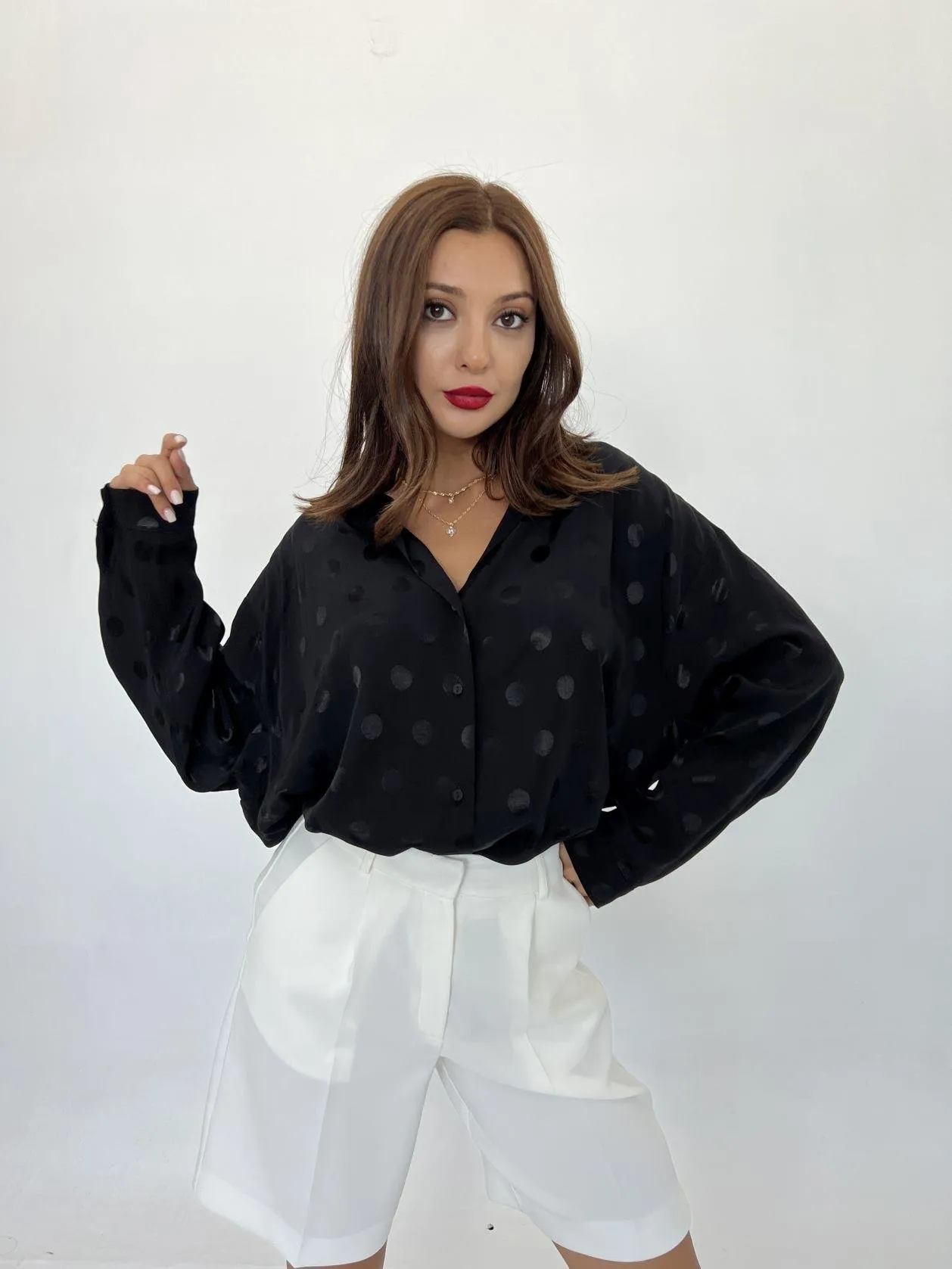 قميص نسائي أوفرسايز سادة مع أزرار أمامية - Beyond Store