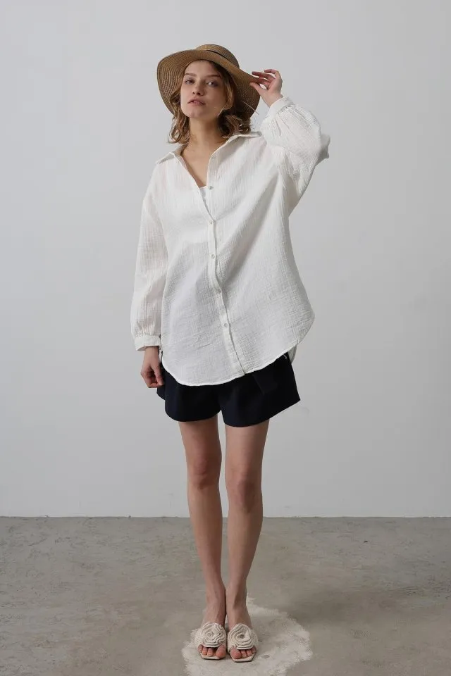 قميص أوفرسايز خفيف بأكمام طويلة وكتف منخفض وقصة واسعة، خيارك المثالي للطبقات العملية والراحة اليومية في الأجواء الدافئة، مصنوع من خامة مودال ناعمة تمنحك إحساسًا منعشًا طوال اليوم.
