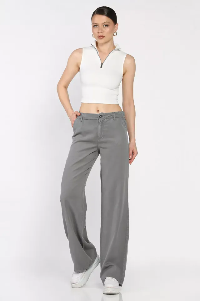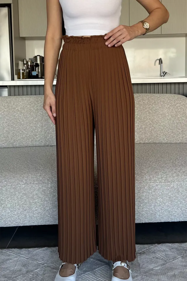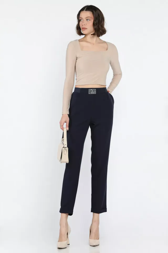 بنطلون كتان بخصر مطاطي و جيب مزدوج للنساء - Beyond Store