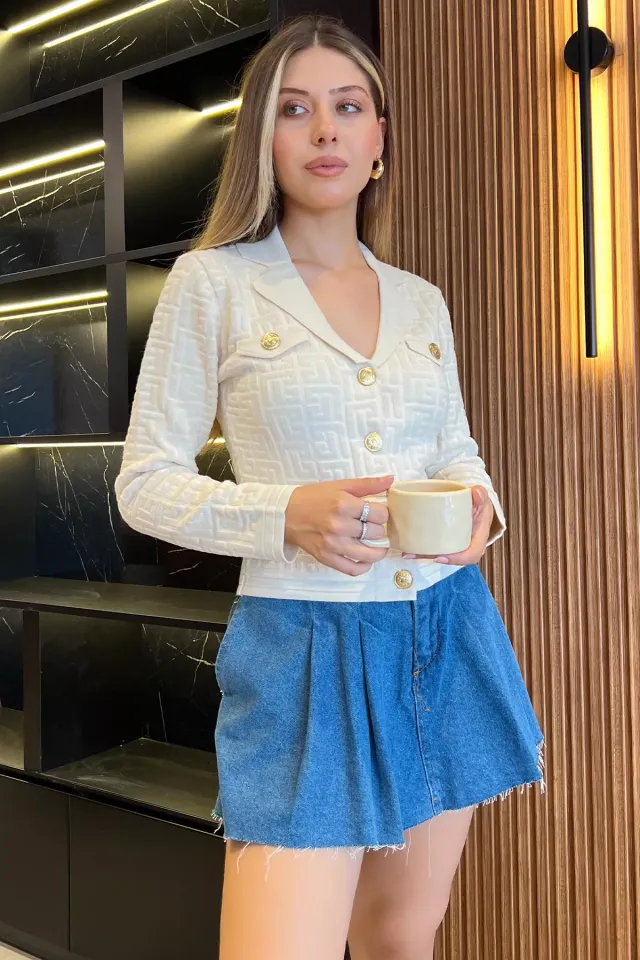 كارديجان محبوك بتفاصيل كشكشة للنساء - Beyond Store