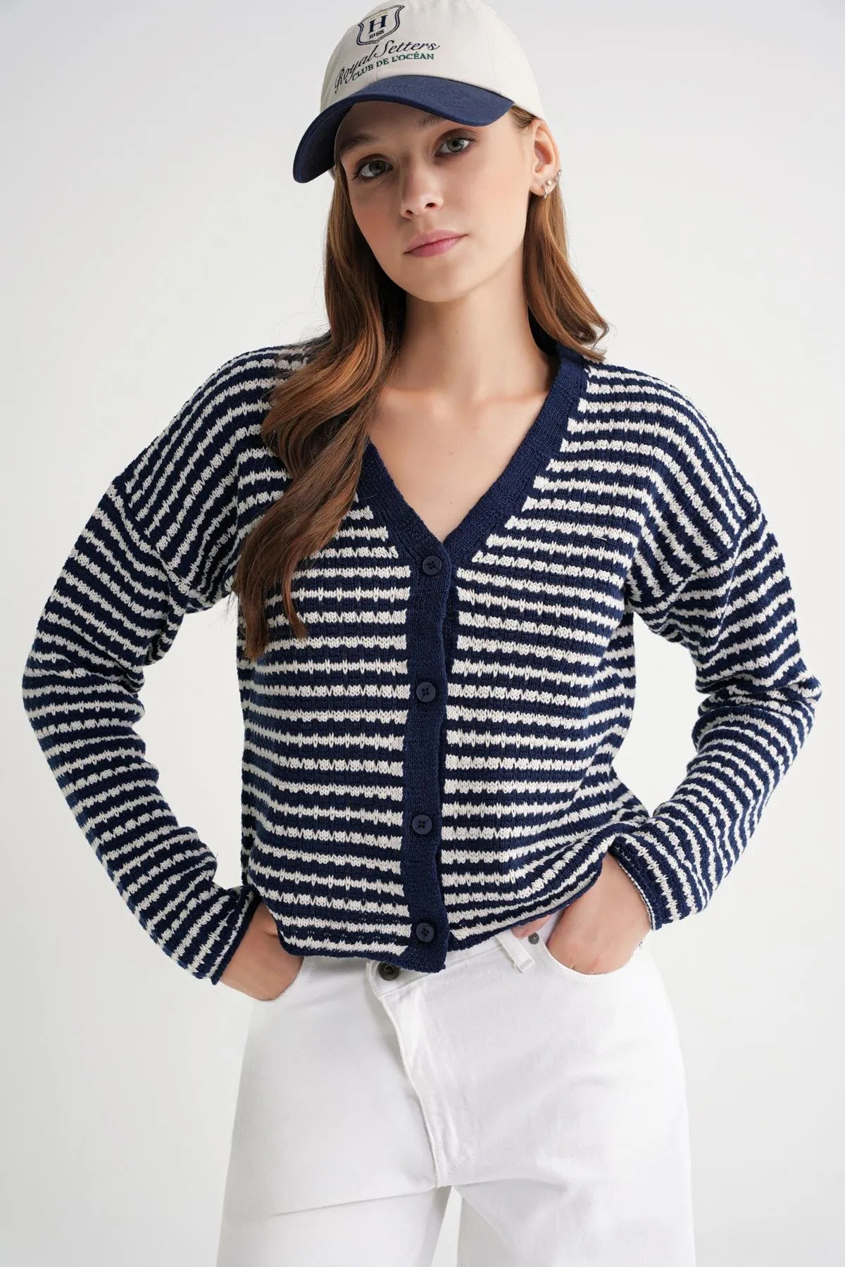 كارديجان نسائي محبوك مضلع بقصة ضيقة وأزرار أمامية، يمنح ملمسًا ناعمًا وإطلالة أنيقة وتنسيقًا متعددًا يناسب الإطلالات الكاجوال والرسمية.
