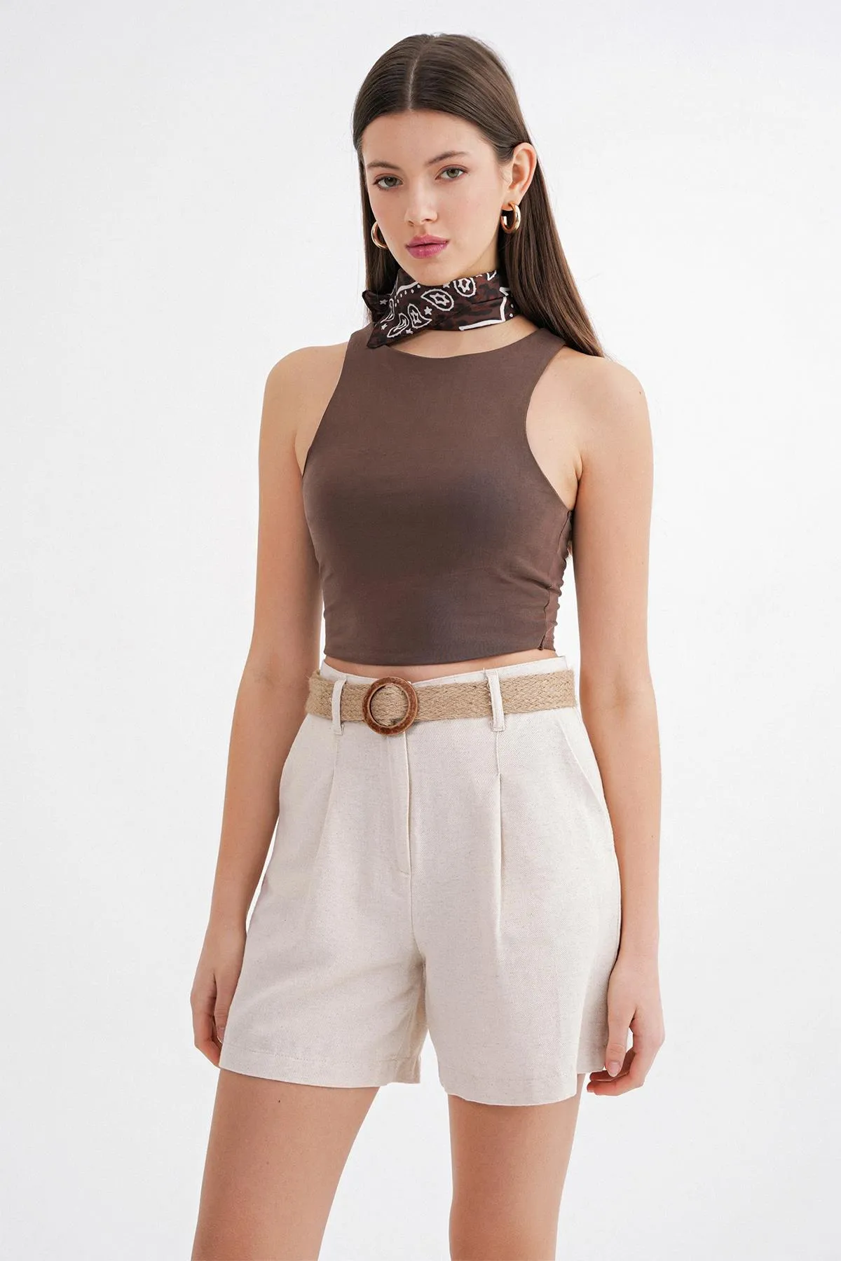 شورت موسلين بخصر عالي للنساء