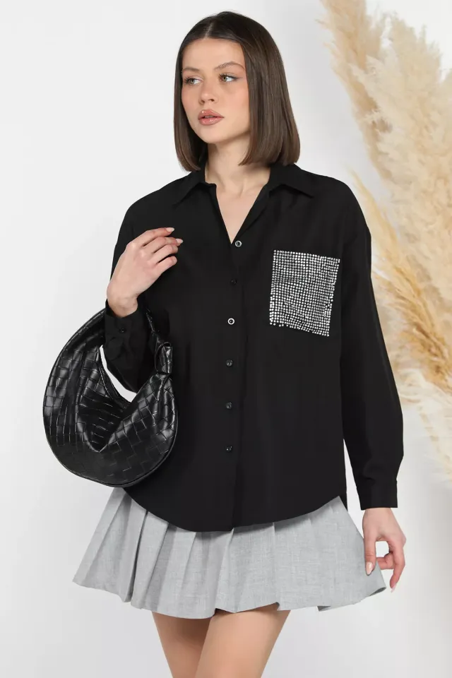 قميص أوفرسايز بأكمام طويلة وخامة كتان وكتف منخفض وجيب أمامي مع أزرار، يمنحك راحة وأناقة في الأيام الدافئة، مثالي للطلعات أو الاستخدام اليومي.