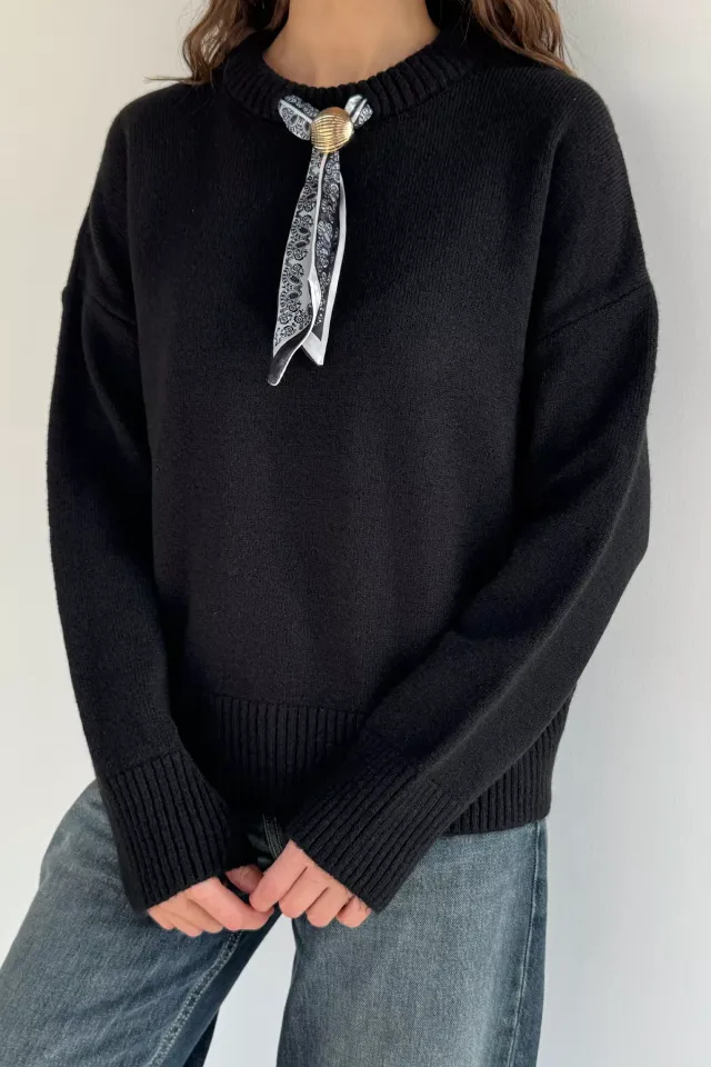 كنزة تريكو اوفرسايز بياقة قائمة وأكمام مزدوجة للنساء - Beyond Store