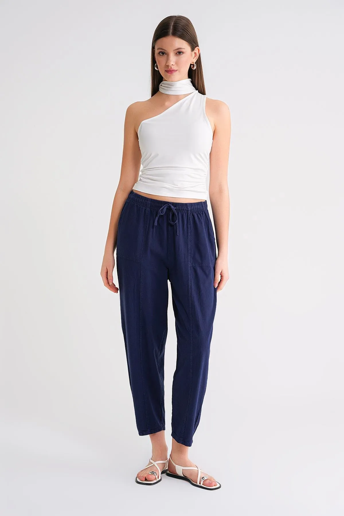 بنطلون بليسيه واسع ورباط خصر عملي — قطعة مريحة تدمج بين البساطة والأناقة العصرية