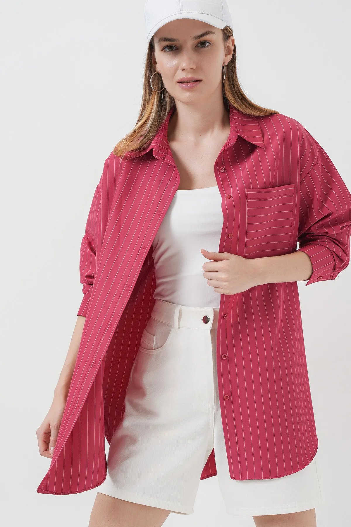 قميص أوفرسايز بأكمام طويلة وجيب وقصة مريحة - Beyond Store