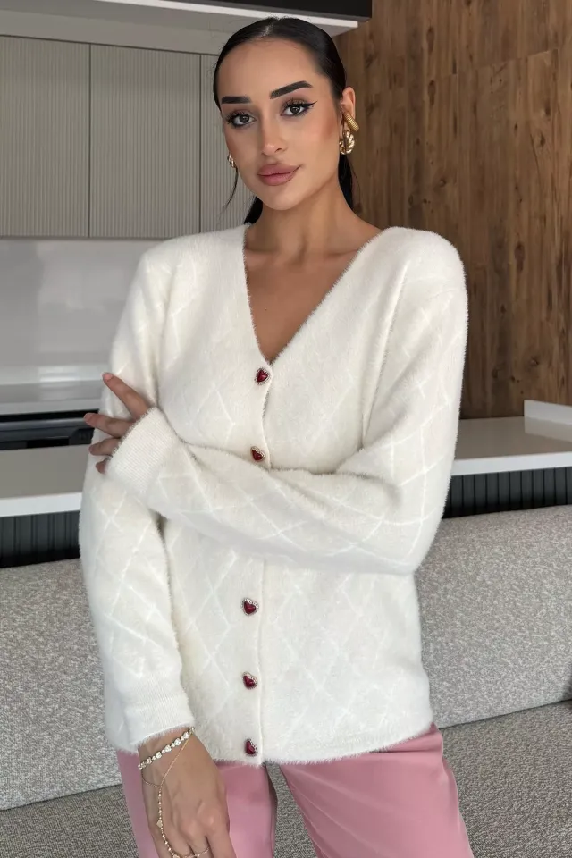كارديجان نسائي محبوك مضلع بأكمام قصيرة - Beyond Store