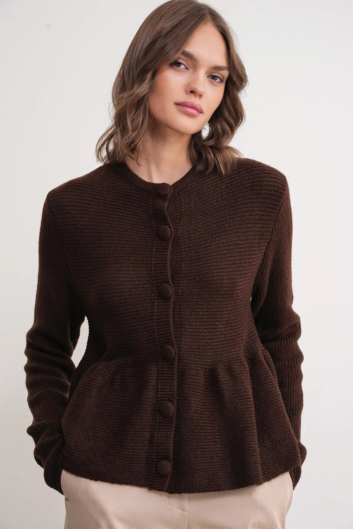 كارديجان نسائي مضلع بأكمام قصيرة وياقة بولو وأزرار أمامية، يمنح راحة ناعمة وأسلوب عصري كاجوال وتنسيق للاستخدام اليومي.