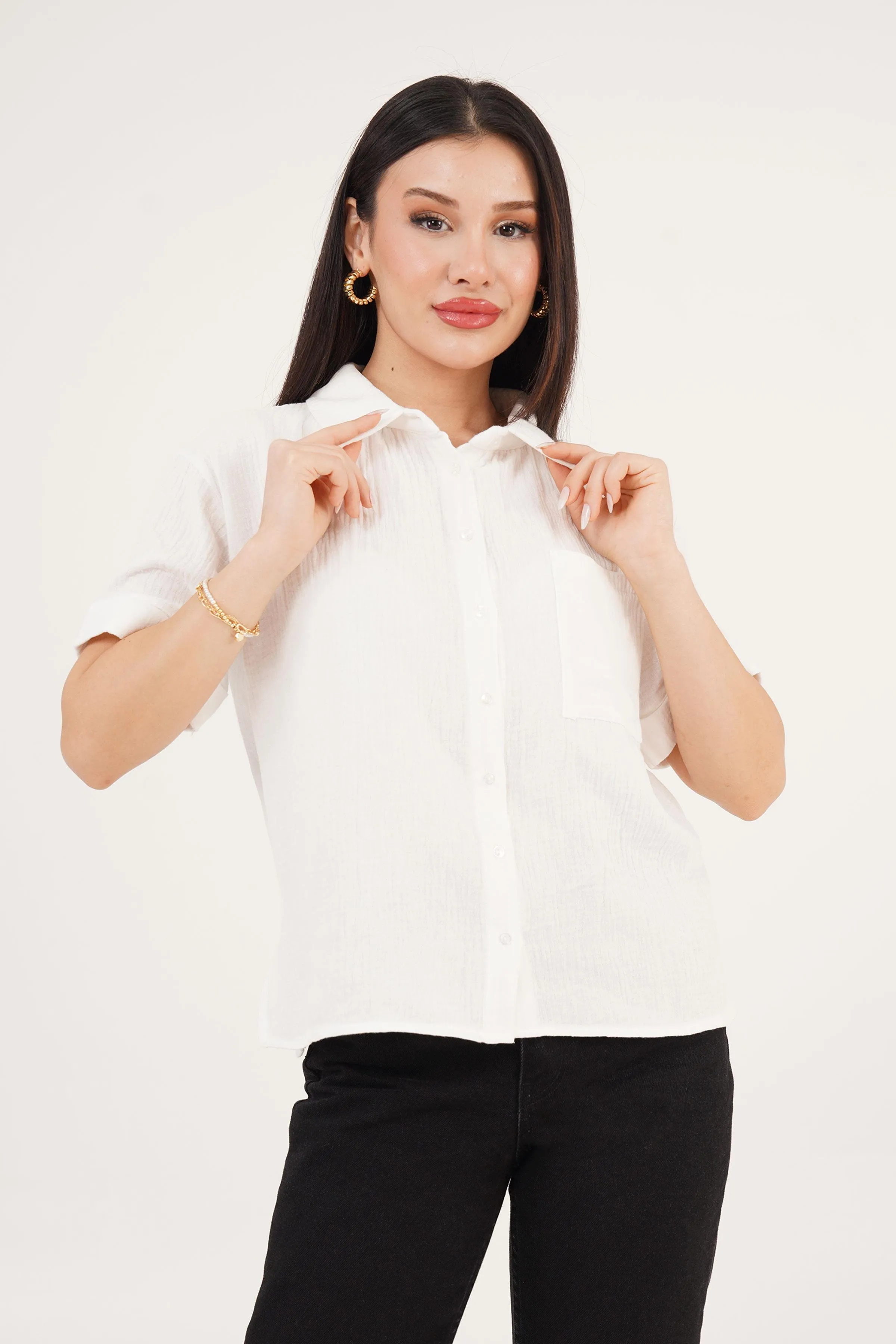 قميص أوفرسايز بأكمام طويلة وكتف منخفض مع جيب أمامي، يمنحك راحة يومية وسهولة في التنسيق، مثالي للطلعات المريحة أو أوقات الاسترخاء بالبيت. استمتعي بملمس الموسلين الخفيف في كل حركة.