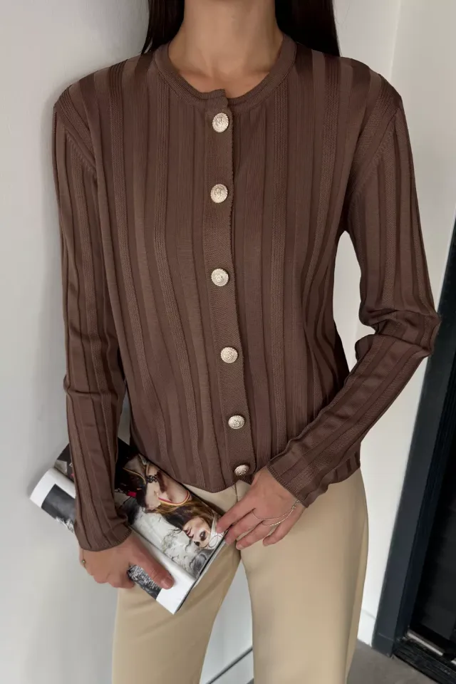 كارديجان نسائي محبوك بأكمام طويلة و أزرار أمامية