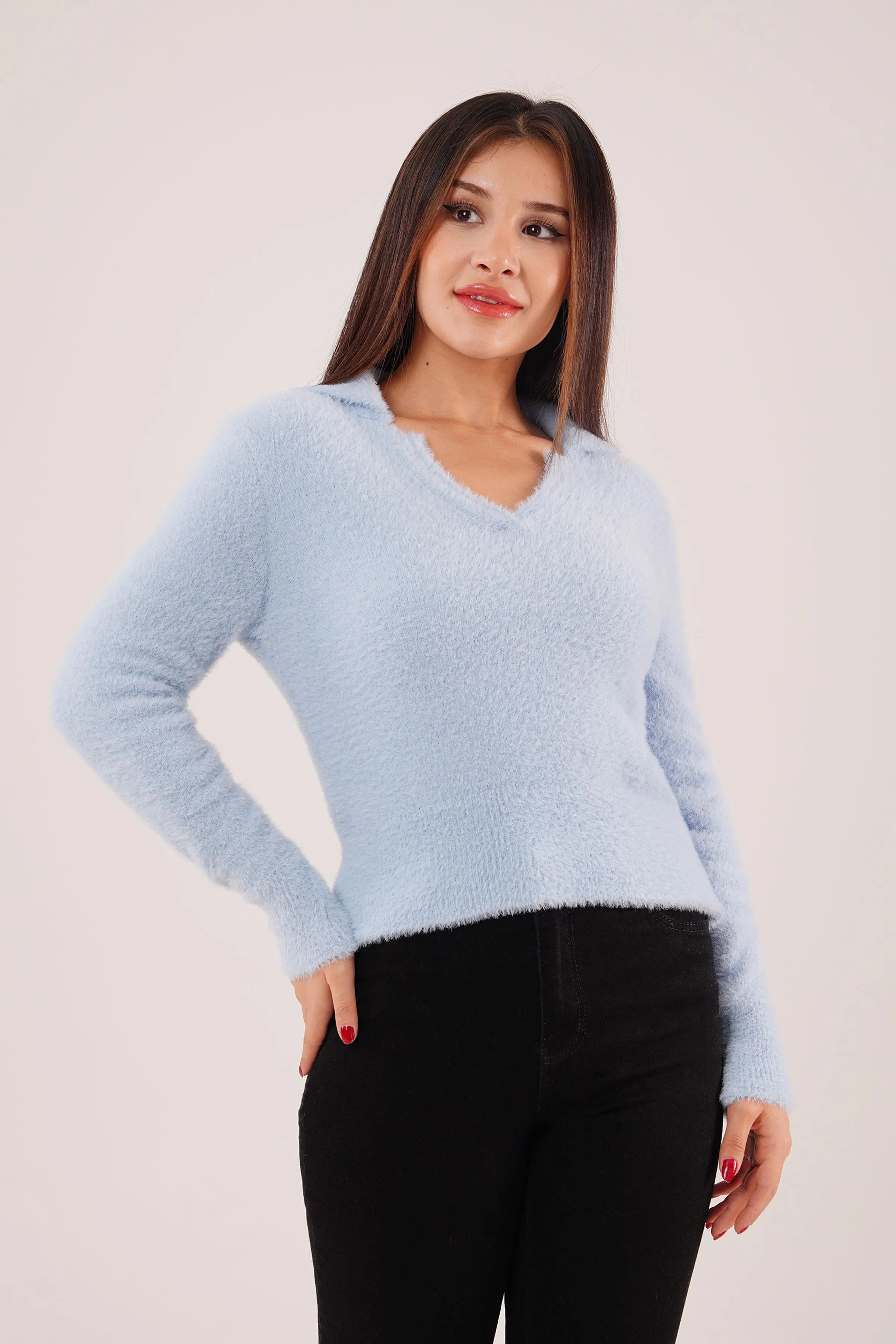 كنزة تريكو نسائية اوفرسايز مخرمة بياقة دائرية