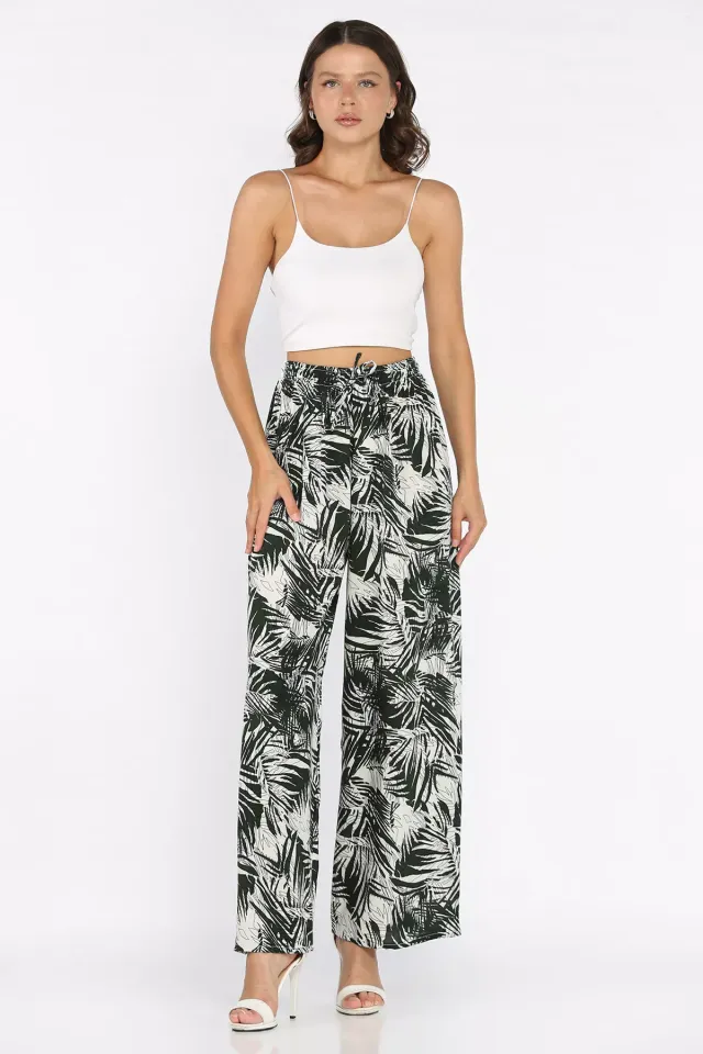 بنطلون نسائي واسع الساق بنقشة مربعات - Beyond Store
