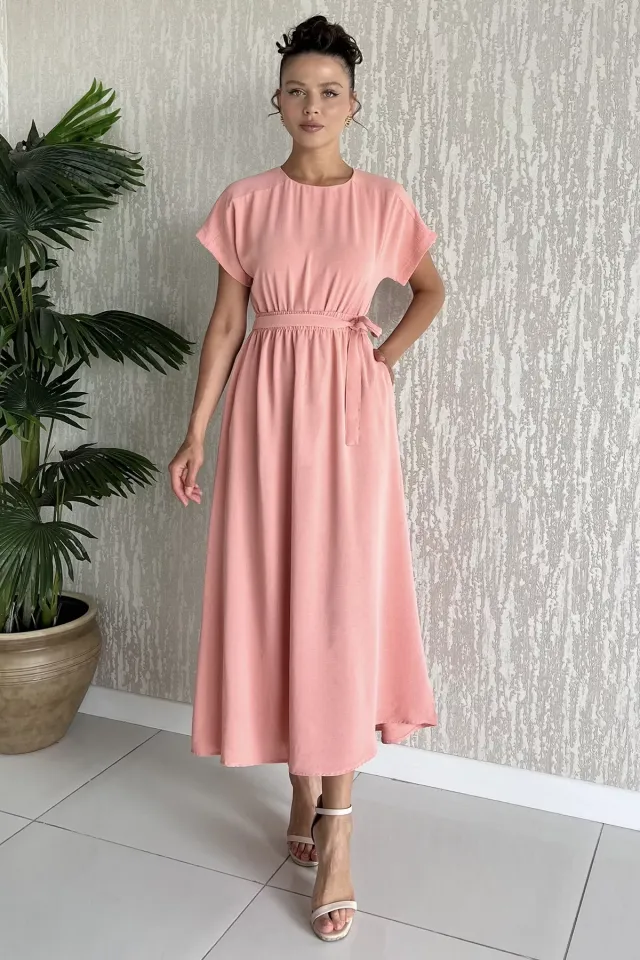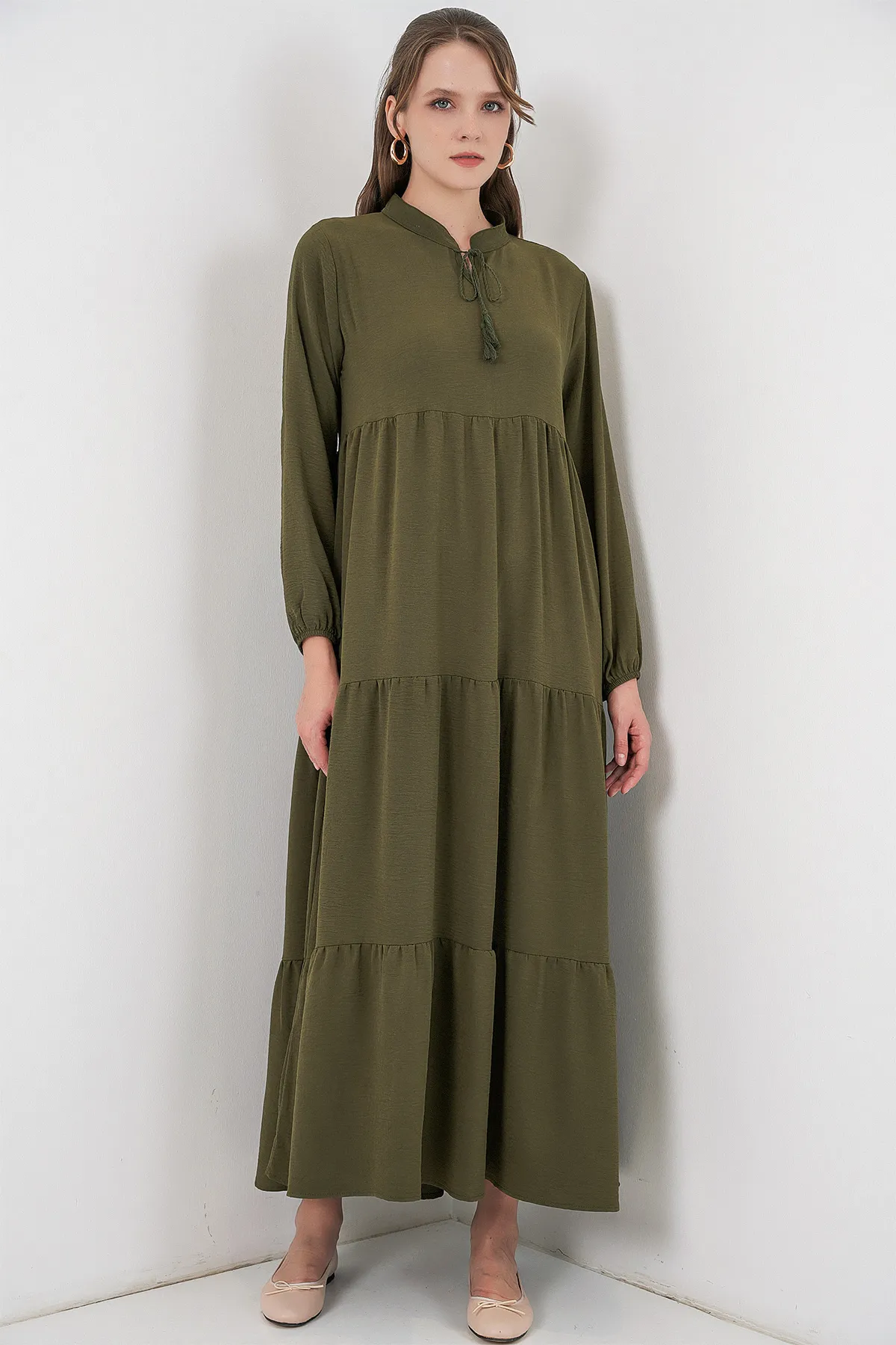 فستان ميدي بحمالات دقيقة وأزرار أنيقة أمامية، من قماش مطرّز ناعم يلف الجسم بشكل مريح، خيار أنيق وسهل ليومك اليومي أو مشاويرك الكاجوال.