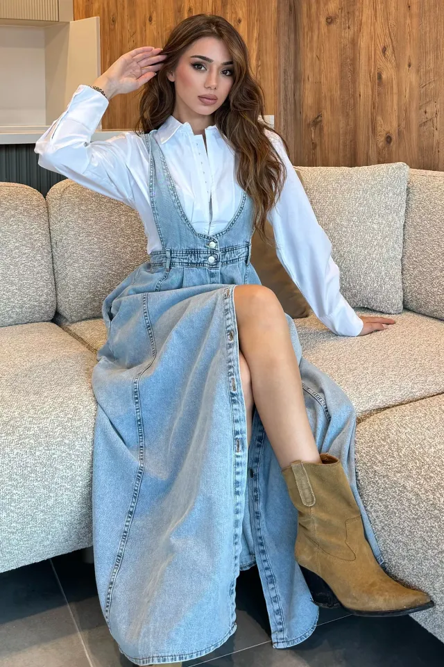 فستان ميدي بحمالات دقيقة وأزرار أنيقة أمامية، من قماش مطرّز ناعم يلف الجسم بشكل مريح، خيار أنيق وسهل ليومك اليومي أو مشاويرك الكاجوال.