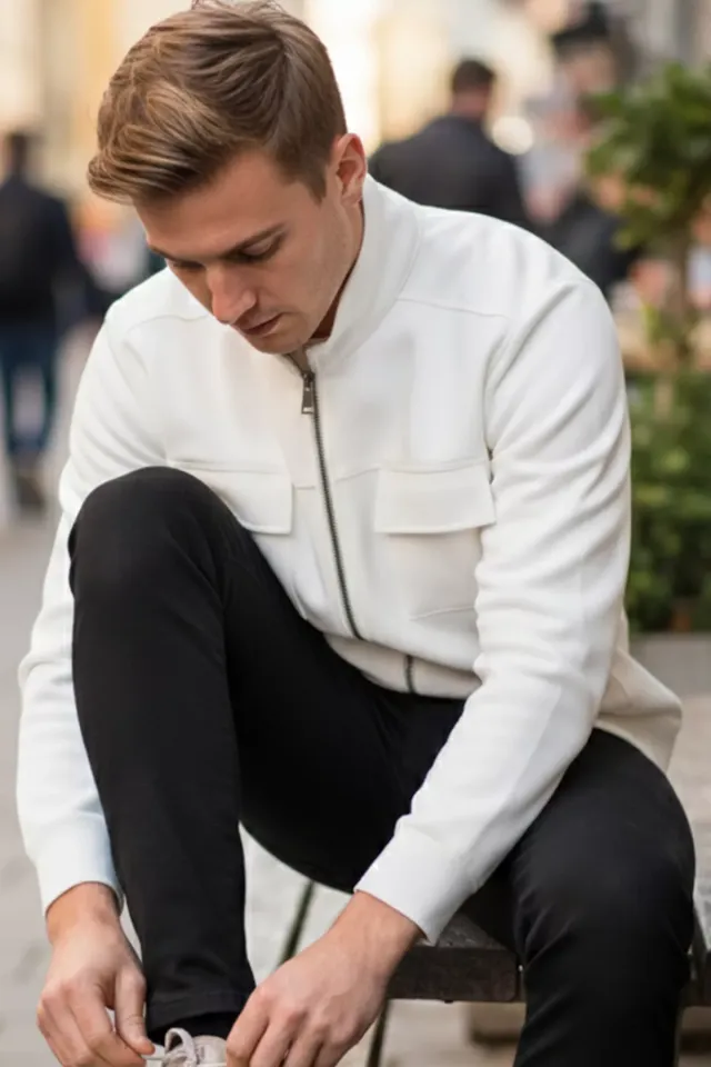 توفر هذه السترة الرجالية ذات الأكمام الطويلة ورقبة القميص والجيوب المزدوجة ملاءمة مريحة وتصميمًا بسيطًا، حيث تجمع بين الراحة والأناقة للارتداء اليومي.