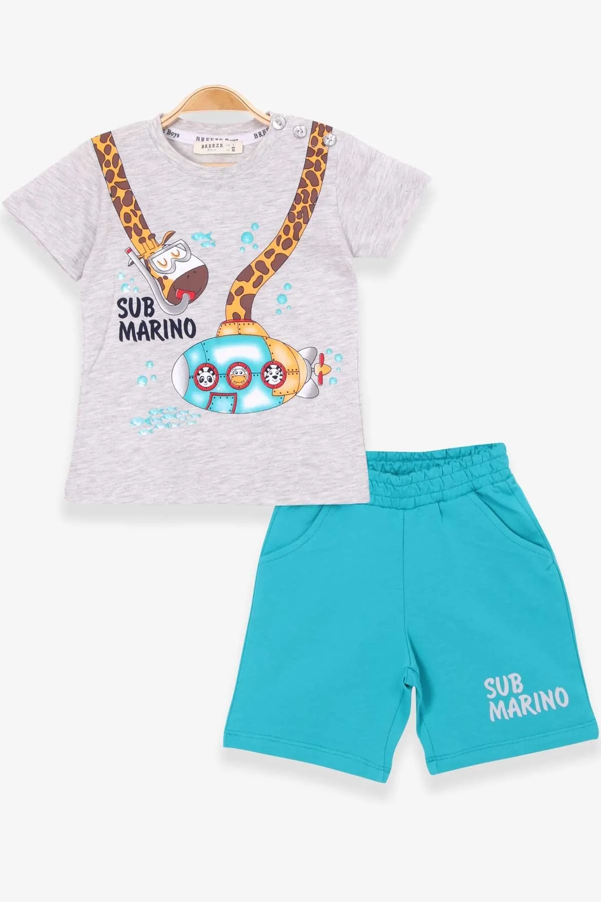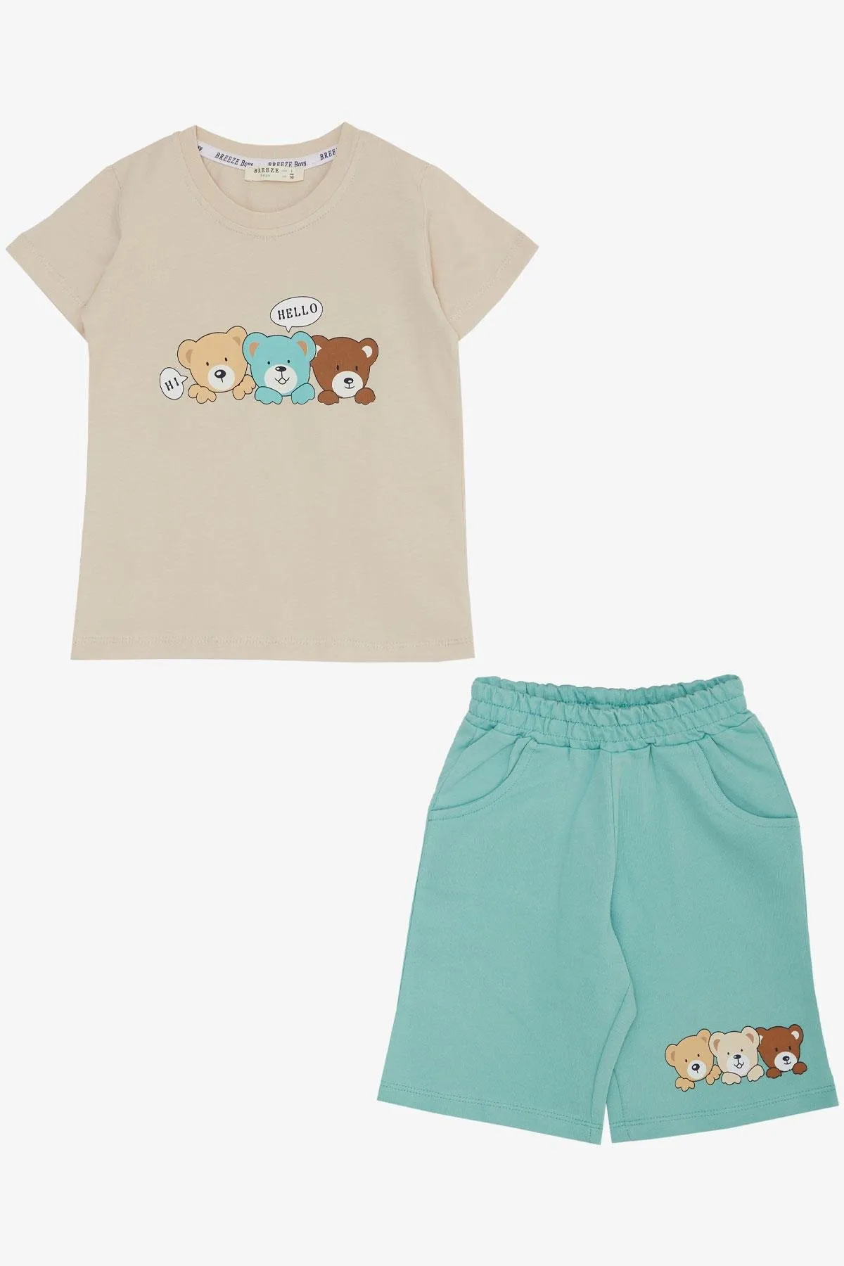 طقم ولادي صيفي كاجوال بكم قصير وياقة دائرية مع شورت مريح
