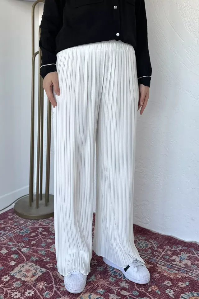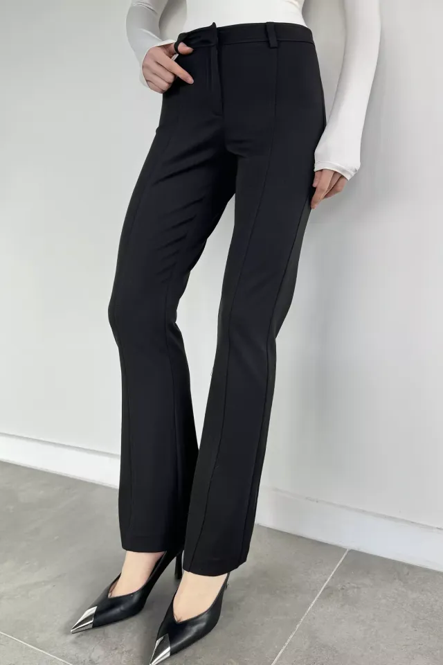 بنطلون نسائي بخصر عالي وقصة واسعة من الأسفل، يمنحك مظهراً أنيقاً مع راحة مثالية، مصنوع من قماش ناعم وقابل للتنفس يناسب الاستخدام اليومي.