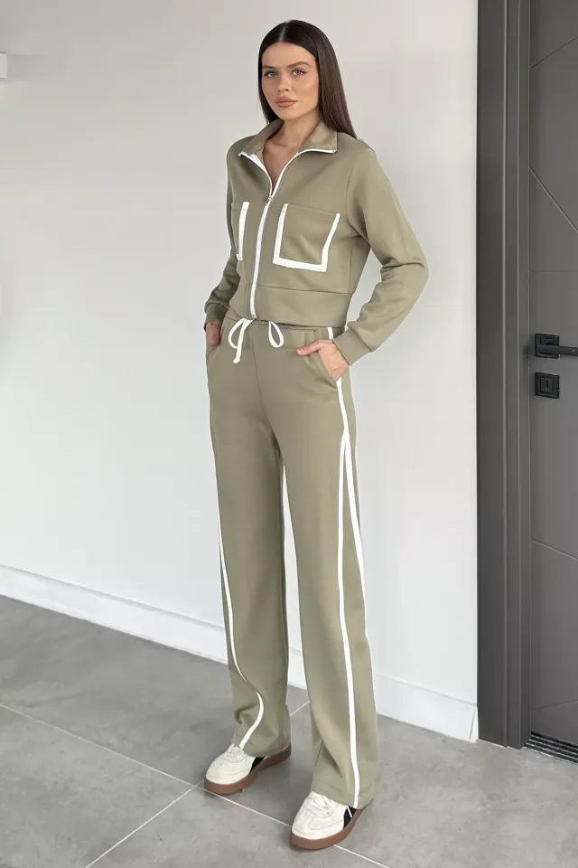 طقم بنطلون بأكمام قصيرة و ياقة على شكل حرف V للنساء - Beyond Store