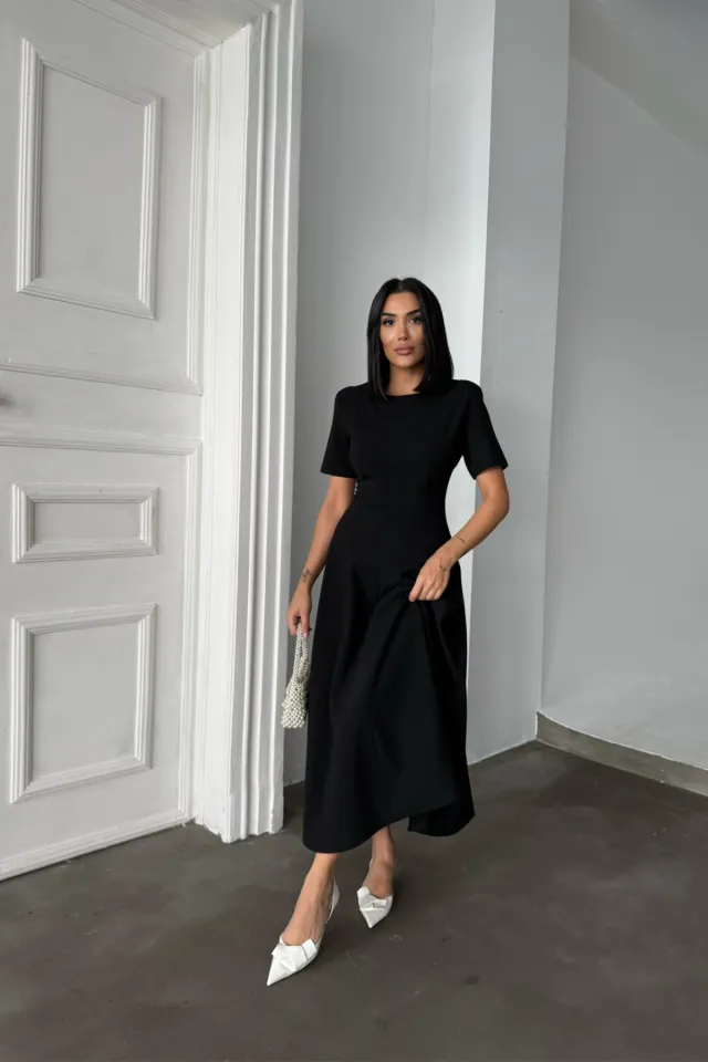 فستان ميدي من الفيسكوز بدون أكمام وياقة دائرية—سادة لكن لطيفة للارتداء اليومي الصيفي للنساء.