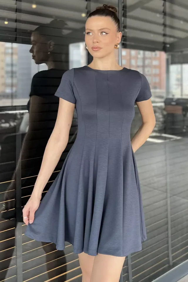 فستان ميدي مزهر بتفاصيل مطاطية وأكمام فراشة للنساء - Beyond Store