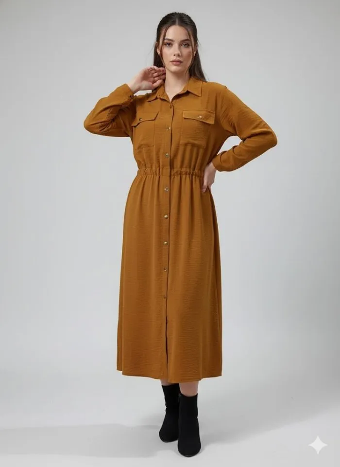 • تفاصيل : رباط الخصر,أزرار أمامية