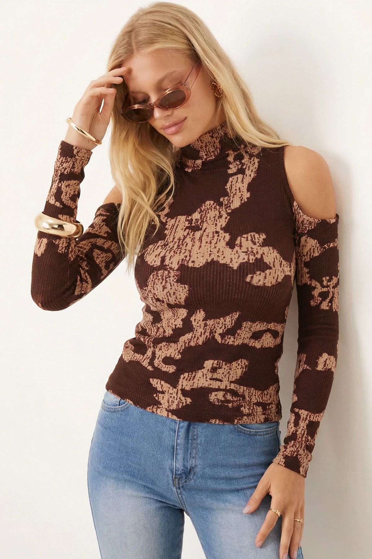 بلوزة بأكمام قصيرة وياقة دائرية مع طبعة زهور وأكمام بالون للنساء - Beyond Store