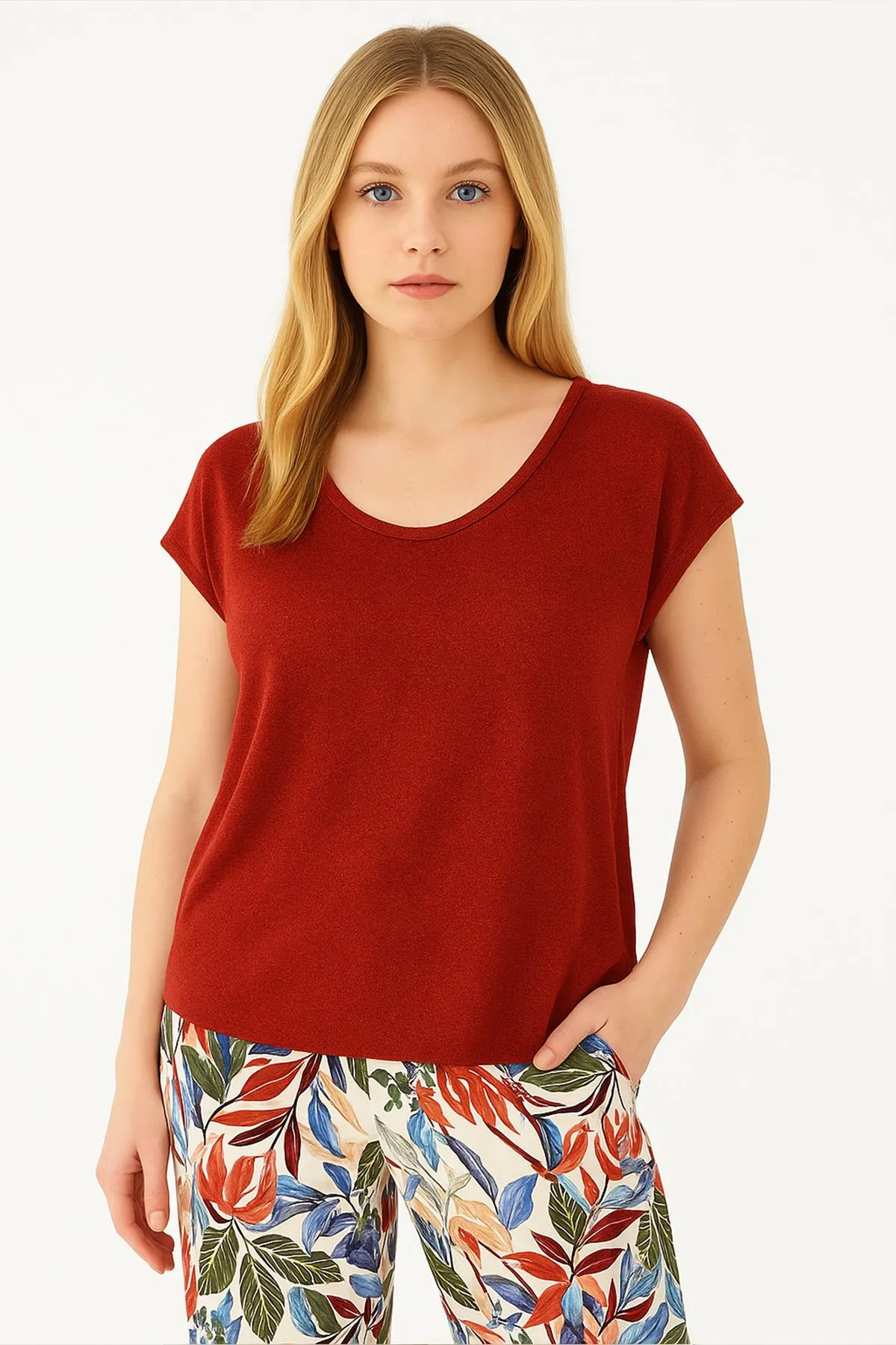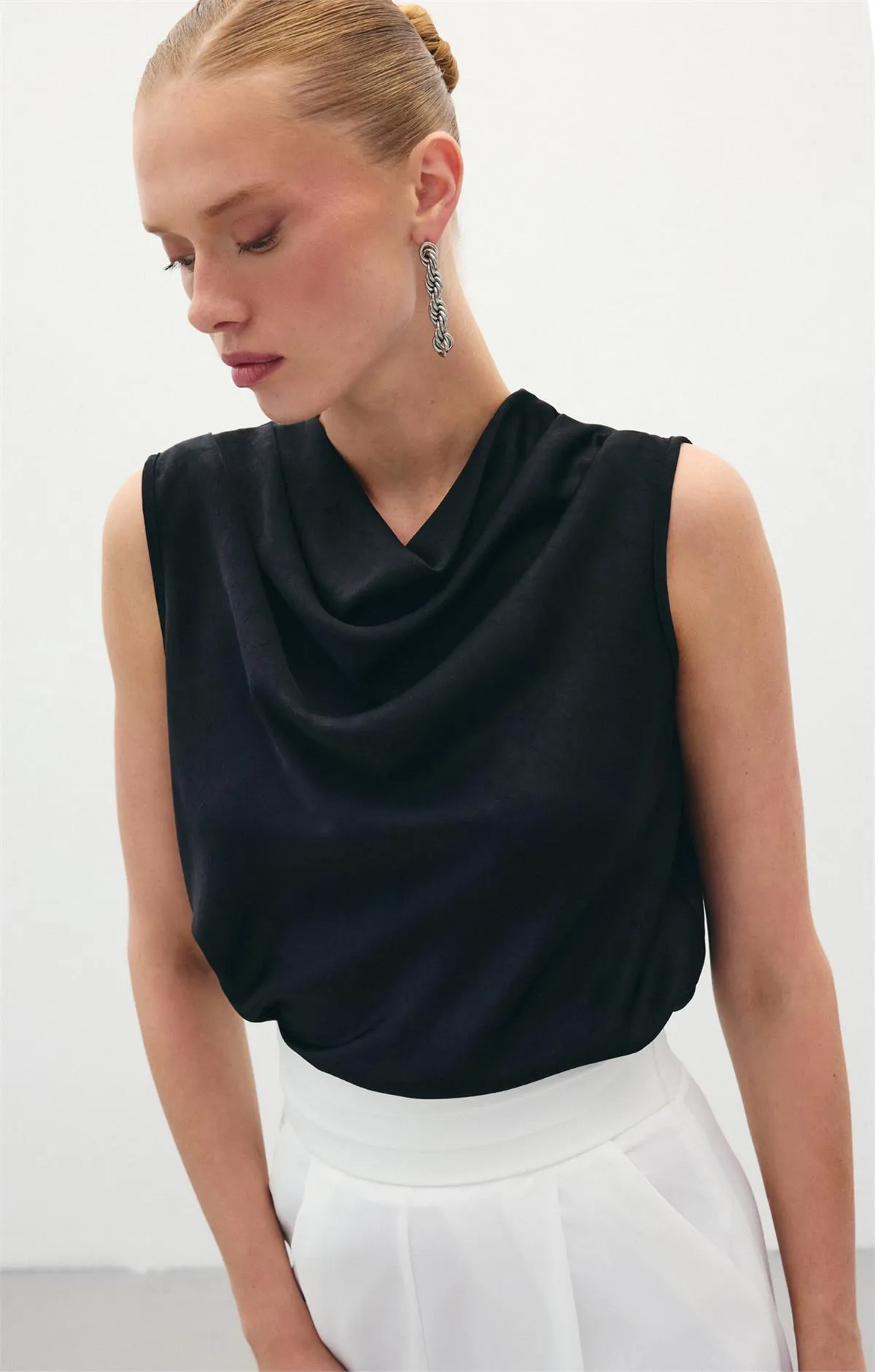 بلوزة أوف سايز مخططة بياقة صينية وأكمام بالون للنساء