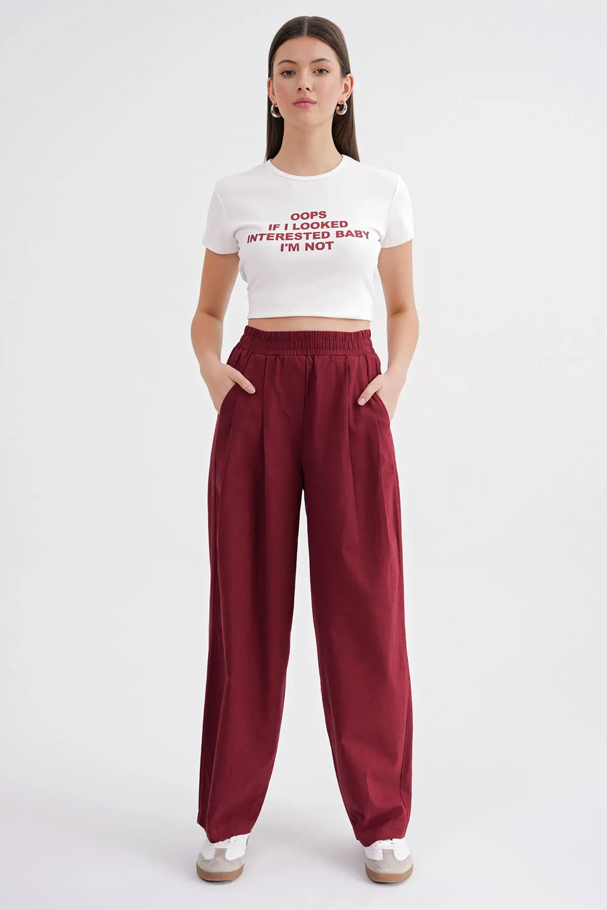 بنطلون نسائي واسع الساق بخصر عالي وحزام أنيق، بقصة انسيابية تمنح راحة وأناقة لإطلالات يومية أو رسمية متعددة الاستخدامات.