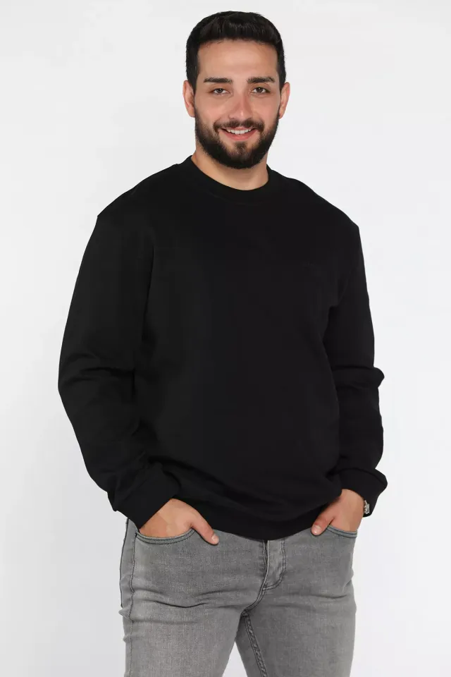 سويتر رجالي بأكمام طويلة وياقة دائرية محاك سادة - Beyond Store