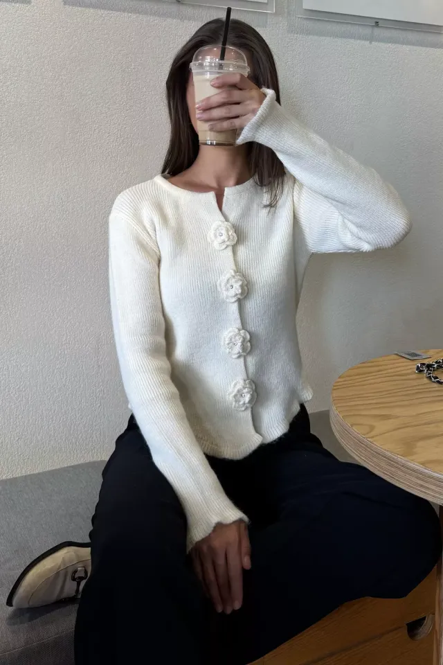 كارديجان نسائي محبوك بقصة عادية وأزرار أمامية، مصنوع من قماش ناعم لمنح راحة ودفء وإطلالة متعددة الاستخدامات وسهلة التنسيق في جميع المواسم.