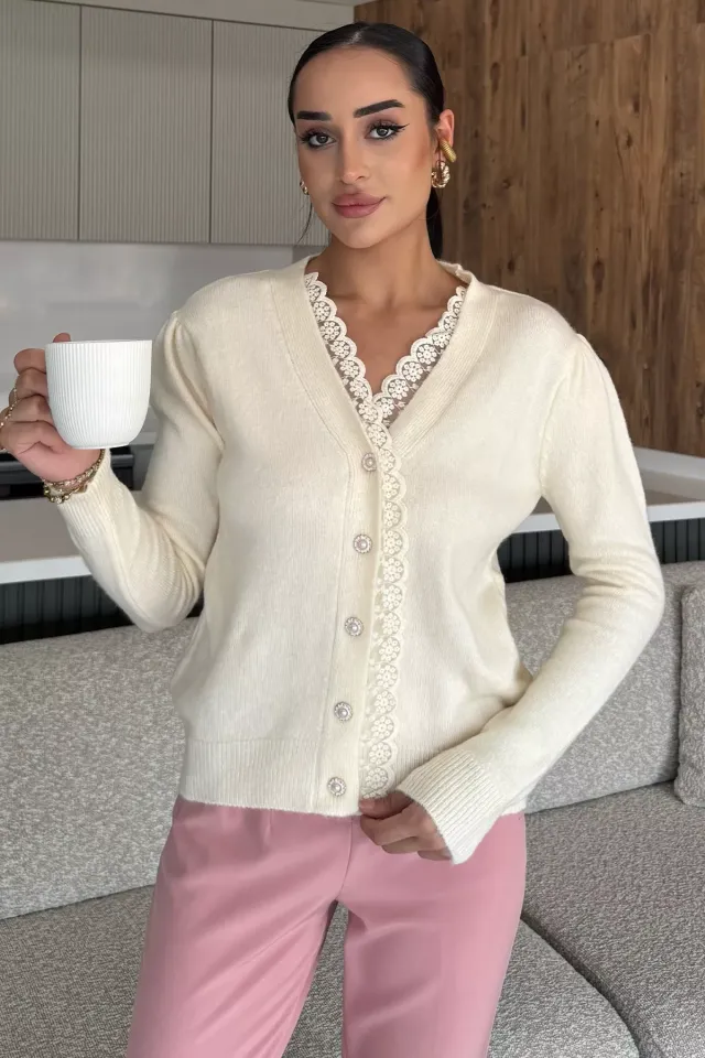 كارديجان نسائي محبوك مخرم بأشرطة أمامية - Beyond Store