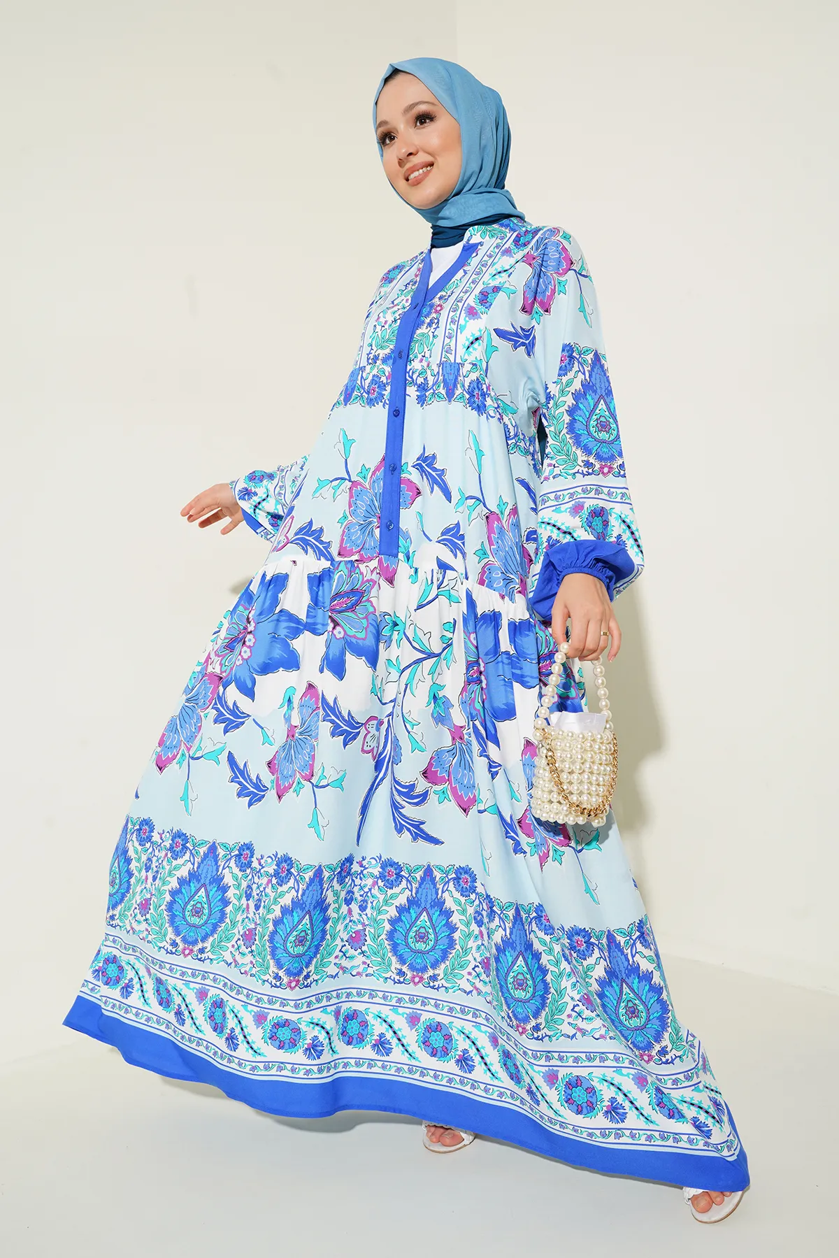 فستان ماكسي شبيه بالكريب بياقة صينية وطيات A-Line، مثالي للراحة اليومية المحتشمة