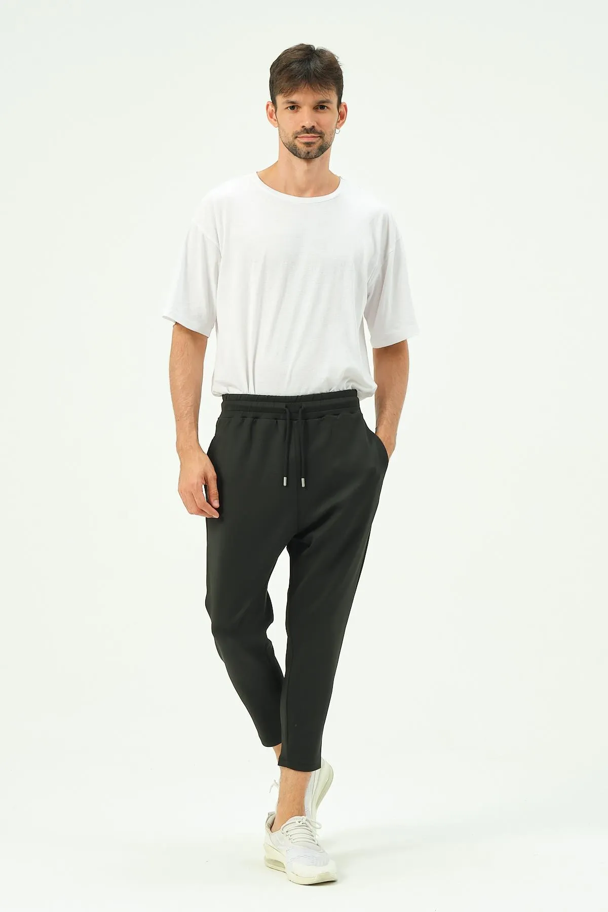 بنطال رياضي رجالي سادة بخصر مطاطي لملاءمة مريحة ومرنة. قماش ناعم وجيد التهوية يجعله مثاليًا للارتداء اليومي أو للاسترخاء.